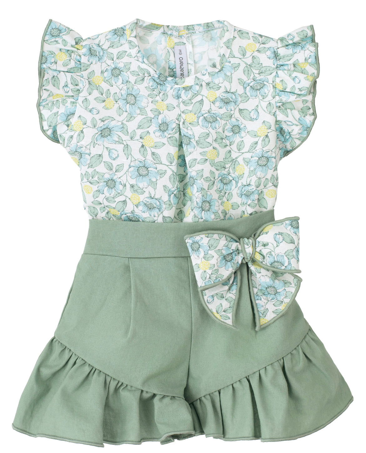 Introduce a touch of Spanish charm to your little girl's wardrobe with the Calamaro | Girl Green Set. The special design exudes a unique style that is both elegant and playful, adding a cheerful vibe to any occasion. Elevate your child's fashion game with this eye-catching ensemble.