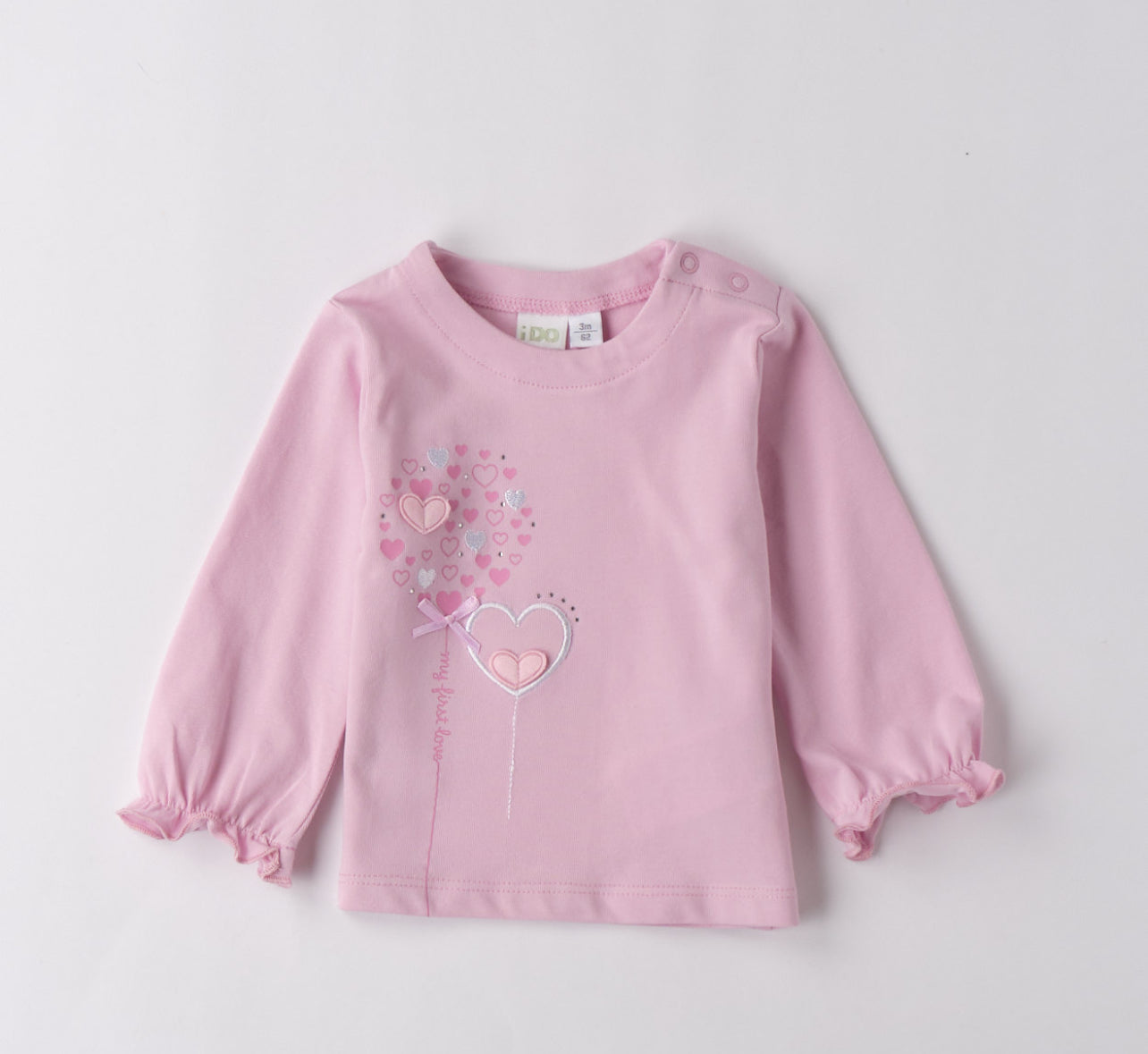 The iDO Pink Long Sleeve Top is the perfect top for any girl. With its charming heart design, it is both stylish and adorable. Made with high-quality fabric, it guarantees comfort and durability. Add this top to your wardrobe and let your little one shine in style.
